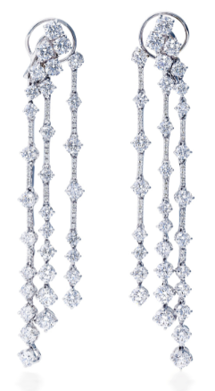 | De Beers戴比爾斯Arpeggia三層鉆石耳環(huán) 特選圓形明亮式美鉆鑲嵌排列于18K白金底座之間,晶瑩的鉆石閃耀著顫動的光芒,既像悠揚的琶音,又像起舞的精靈。 |