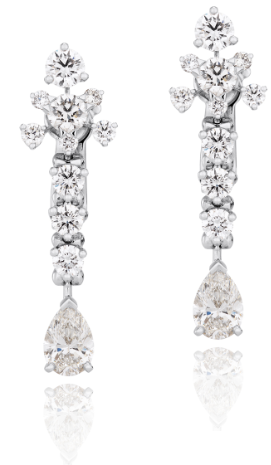 | De Beers戴比爾斯Lea鉆石耳環(huán) 這款Lea鉆石耳環(huán)的設(shè)計來自于山泉之水的形象,繼承戴比爾斯珠寶一貫對于自然的尊敬與崇尚。耳環(huán)設(shè)計精巧細膩,逼真地再現(xiàn)了流動中的水滴所折射的耀眼光芒。 |