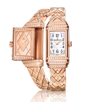 積家 Reverso One Duetto Jewelry雙面翻轉(zhuǎn)系列珠寶腕表玫瑰金款糅合大工坊的高級珠寶與高級制表工藝,為女性呈獻一款完美平衡藝術(shù)設(shè)計和功能性的珠寶杰作。此腕表從裝飾藝術(shù)汲取靈感,長方形表盤、背面表盤的菱形圖案,以及18K玫瑰金表鏈的設(shè)計,其線條細致修長,展現(xiàn)高雅的女性魅力。此外,表盤上、下均采用標志性的三道裝飾刻紋,令這款可翻轉(zhuǎn)的腕表更具特色。裝飾藝術(shù)風(fēng)格自誕生起一直引領(lǐng)時尚,歷久常新。這款典范之作完美詮釋了裝飾藝術(shù)風(fēng)格的簡約設(shè)計哲學(xué)。