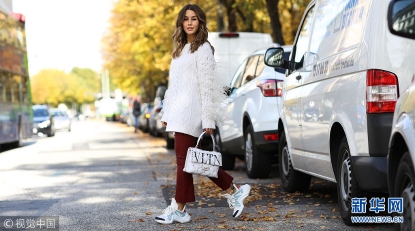 時尚博主街拍:毛衣+手袋+老爹鞋 簡約靚麗