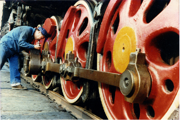 那個時候的鐵路修車人,每每“伺候”這些大家伙時,總會用油棉紗將烏黑車身和大紅車輪擦得锃亮。“就是要讓火車有股精氣神,這不就是咱檢修工人的價值嗎?”吳師傅談到此,聲音不由高了幾度。