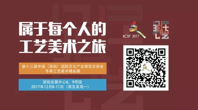 第十三屆文博會冬季工藝美術(shù)精品展由文博會組委會辦公室、中國工藝美術(shù)學會主辦,由深圳報業(yè)集團、深圳國際文化產(chǎn)業(yè)博覽交易會有限公司、深圳市工藝美術(shù)行業(yè)協(xié)會承辦,于 2017年12月8日至11日在深圳會展中心6,9號館舉辦,展覽面積達22500平方米,薈萃我國工藝美術(shù)界頗具實力和代表性的展商和展品資源。展會期間,將配套舉辦第十三屆中國工藝美術(shù)文化創(chuàng)意獎評獎活動。