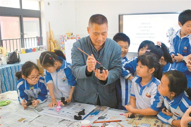 12月第一期非遺文化課堂已于上周四下午開始?;搓柲嗄喙反硇苑沁z傳承人張華偉一行來到深圳市龍華區(qū)外國語學(xué)校,為同學(xué)們分享了泥泥狗捶泥、煮染等制作工藝和文化歷史。