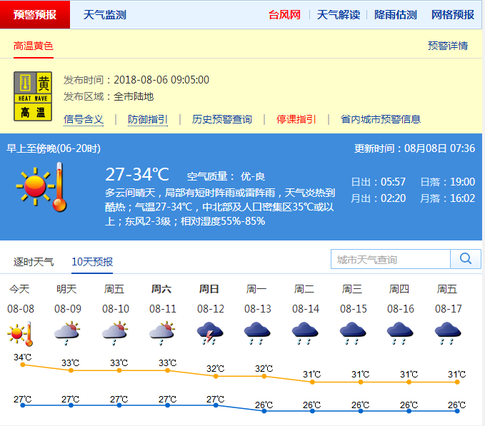 市氣象局發(fā)布未來(lái)10天天氣預(yù)報(bào)(數(shù)據(jù)更新于8月8日07時(shí)36分)
