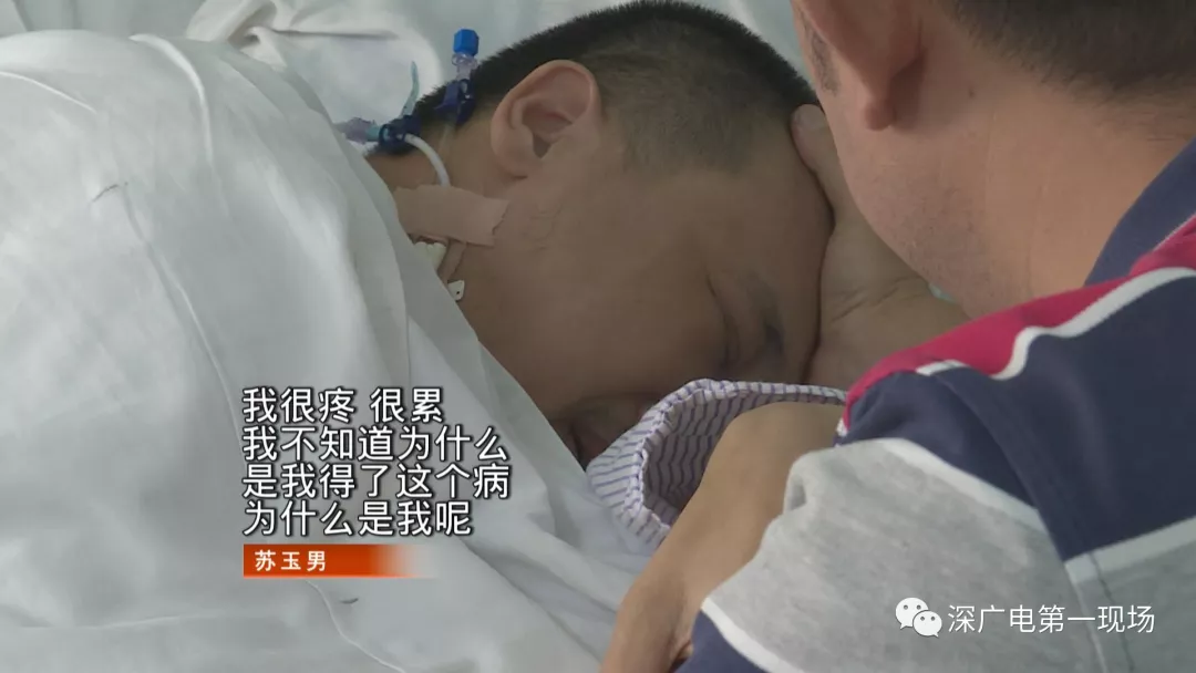 昨天中午,記者來(lái)到位于廣州的中山大學(xué)附屬第一醫(yī)院,在脊柱外科的病房里見(jiàn)到了蘇玉男,此時(shí)他側(cè)身躺著,雖然這兩次手術(shù)很成功,但由于欠費(fèi)太多,恢復(fù)期只能保守治療,沒(méi)有得到很好的藥物控制,有些感染的他,正在發(fā)高燒,他的手緊緊握住病床護(hù)欄,神情十分痛苦。