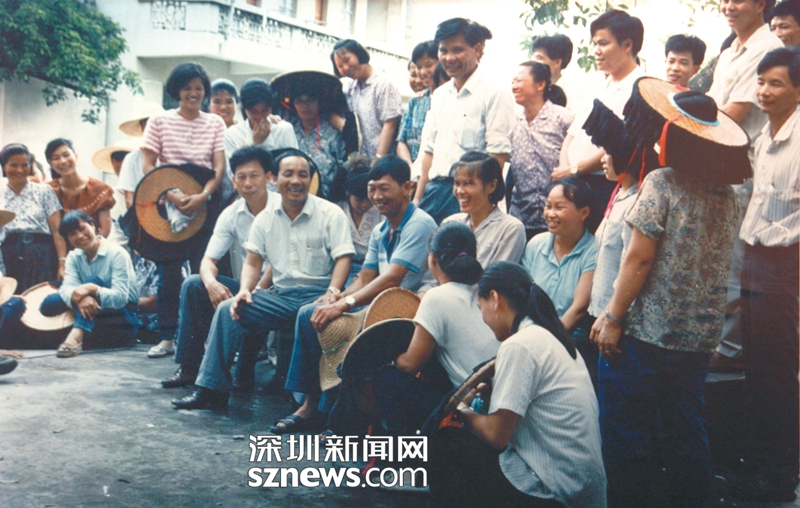 上個(gè)世紀(jì)八十年代,南嶺村老書記張偉基(中)與黨員群眾在談心