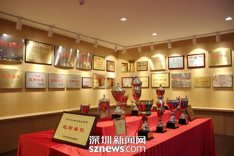 南嶺村村史展覽館里陳列歷年來(lái)獲得榮譽(yù)牌匾和獎(jiǎng)杯