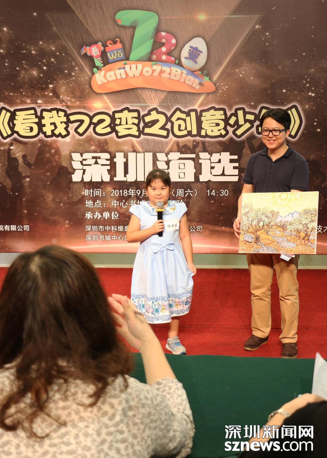 活動現(xiàn)場, 曾經(jīng)登上過“央視看我72變”舞臺的兩組優(yōu)秀創(chuàng)意小隊前來為海選的小伙伴加油打氣,來自南方科技大學(xué)實驗學(xué)校的楊林峰為大家?guī)怼爸悄芊诸惱啊?,該節(jié)目曾在“看我72變”中獲得周季軍。來自麒麟小學(xué)的吳浩成展示了“父親節(jié)的禮物”,該節(jié)目也曾登陸“看我72變”,并獲得周冠軍。