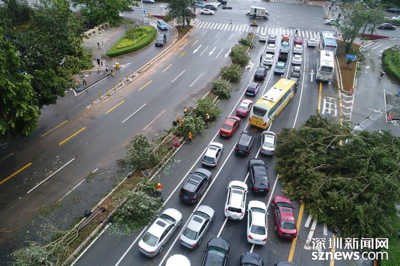 雖然經(jīng)過很多人的連夜“修復(fù)”,但此次風(fēng)災(zāi)35年一遇,造成的影響超出預(yù)期,仍有許多道路被倒伏的樹木阻斷,但樂觀的深圳人,在“搭把手”和相互照應(yīng)中,迎來了這全新的一天。