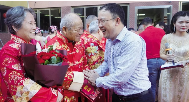 老人們雖然大多語言拘謹(jǐn),不少羞于表達(dá)愛意,但幾十年的風(fēng)雨同行,甘苦與共,相濡以沫,他們已用實際行動踐行“執(zhí)子之手、與子偕老”的不變承諾。他們對婚姻的堅守,彼此不離不棄,讓人為之動容、深受感染,獲頒金婚證書。