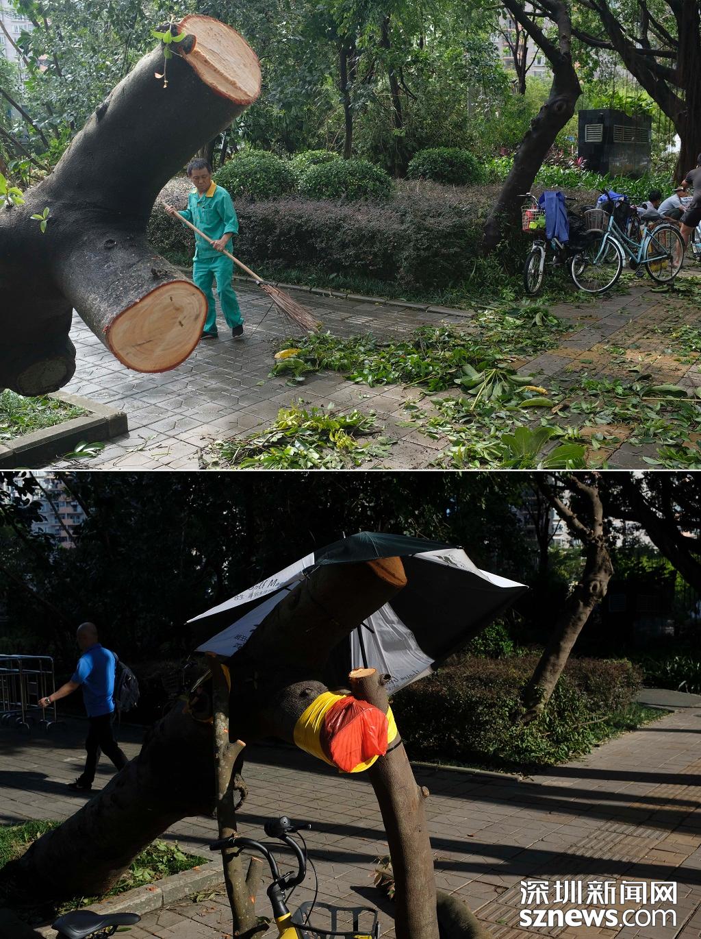 深圳新聞網(wǎng)9月18日訊(記者 楊浩翰)臺風(fēng)“山竹”已成過去式,它給深圳留下的影響卻不容小覷,倒塌的樹木和樹葉隨處可見,對城市交通造成了影響。9月17日、18日,記者兩次走訪福田石廈地鐵站以及商報二路,觀察倒塌樹木的清理情況。遍地樹葉已被清理干凈,這座城市正在快速“復(fù)原”。