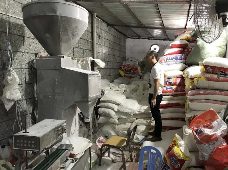 執(zhí)法人員來到位于龍東社區(qū)同昌路的一個工業(yè)區(qū)進(jìn)行突擊檢查。剛進(jìn)入該工業(yè)區(qū),執(zhí)法人員就發(fā)現(xiàn)有幾間鐵皮房大門緊鎖,通過門縫還能看到大量各品牌的洗衣粉、消毒液,以及各式設(shè)備數(shù)臺。經(jīng)檢查,現(xiàn)場共有這類鐵皮房3個,分散在工業(yè)園區(qū)3個不起眼的角落,占地面積超過200平方米。鐵皮房內(nèi)環(huán)境惡劣、電線亂搭,地上堆滿各種標(biāo)識的加工原料以及各種日化品牌的包裝袋,數(shù)量巨大。