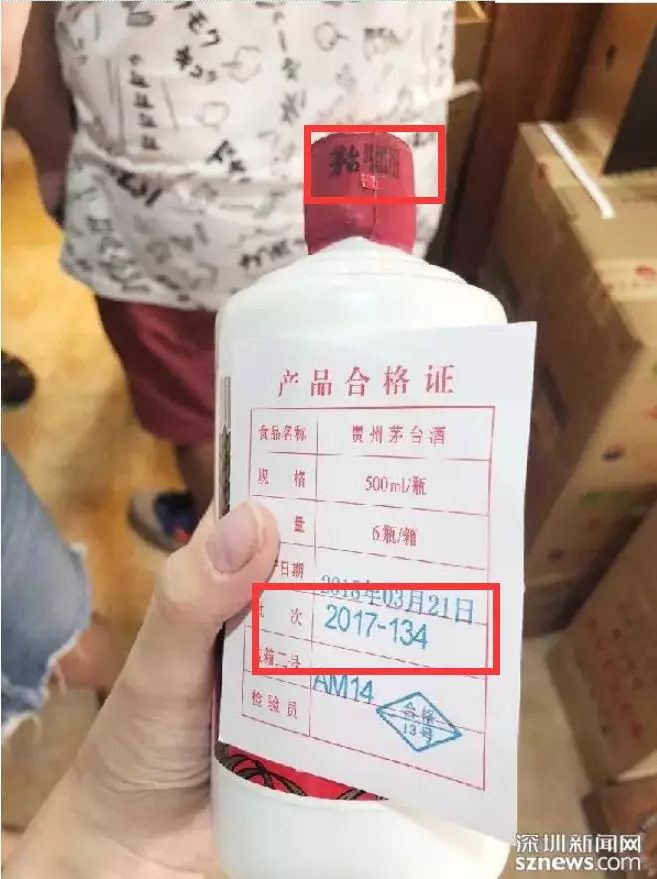 執(zhí)法人員支招,從以下方法入手:一般每箱茅臺都有對應(yīng)的產(chǎn)品合格證,合格證上有相關(guān)批次數(shù)字,如果合格證上的批次數(shù)字與茅臺開口處所寫的批次一樣的話,為真茅臺概率很高。如圖,合格證和茅臺瓶口的數(shù)字皆為2017-134,為真酒,市民可放心飲用。