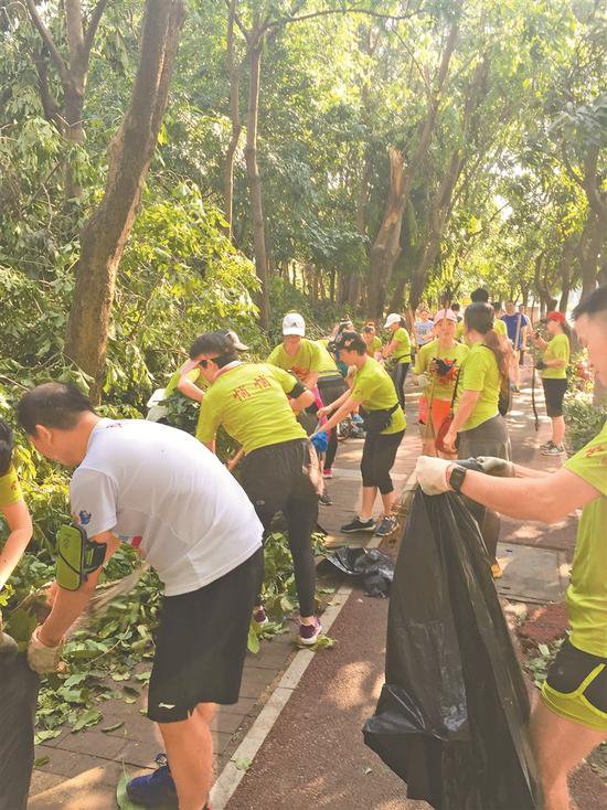 ▲深圳各跑團跑友們自發(fā)參與各大公園的清障清掃工作。