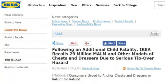 根據(jù)美國消費(fèi)者產(chǎn)品安全委員會(huì)的數(shù)據(jù),宜家當(dāng)時(shí)在全球召回了2300萬件該系列產(chǎn)品 -其中包括近300萬件在美國銷售的產(chǎn)品和110萬件在加拿大銷售的產(chǎn)品。