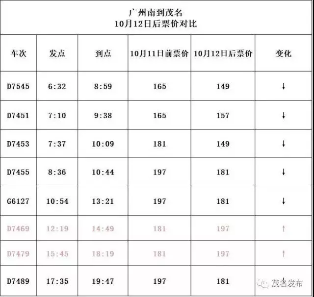 茂名、陽(yáng)江往返廣州南的動(dòng)車(chē)票價(jià)