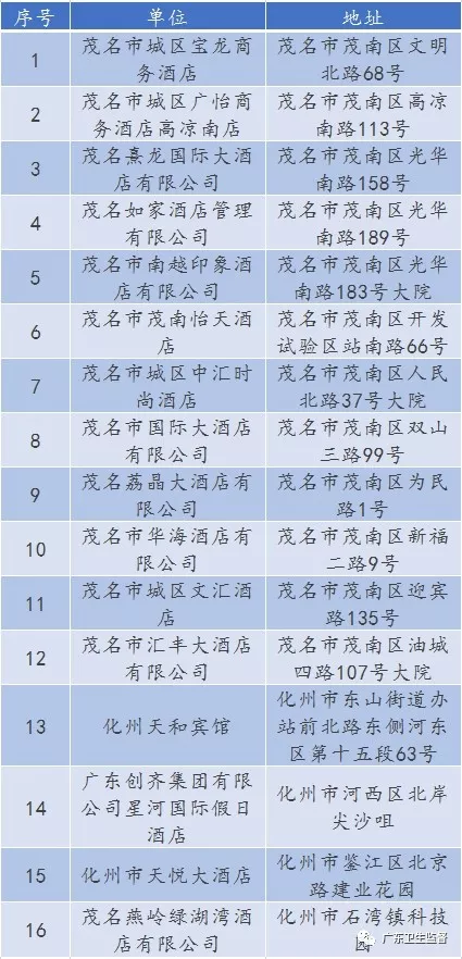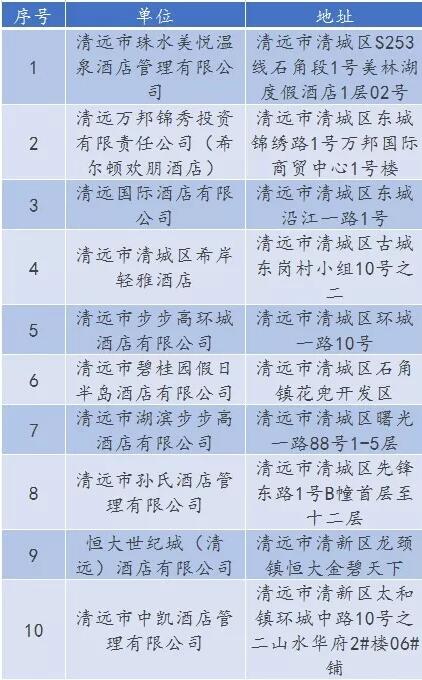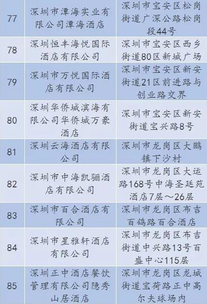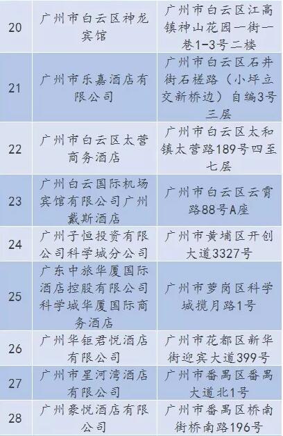 廣東省A級(jí)住宿單位名單