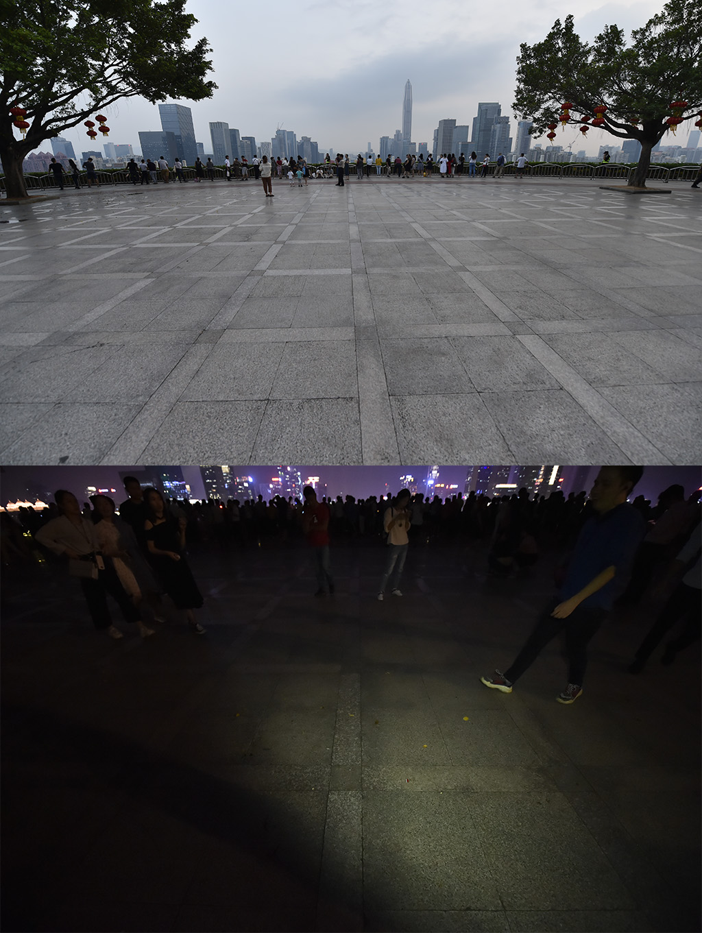 10月8日晚,蓮花山觀景臺(tái)的看燈人潮并沒有燈光秀首秀那一天洶涌,燈光表演過后,只有兩名清潔工人留下來進(jìn)行垃圾清掃?!敖裢砝佟!必?fù)責(zé)蓮花山觀景臺(tái)區(qū)域的環(huán)衛(wèi)工人告訴記者,“我們?cè)跓艄庑闫陂g看到垃圾就會(huì)及時(shí)清理,一般散場之后一個(gè)小時(shí)是清掃時(shí)間,但今天這個(gè)工作很快就完成了,深圳人素質(zhì)還是很高的,基本很少有人會(huì)亂丟垃圾?!?/p>