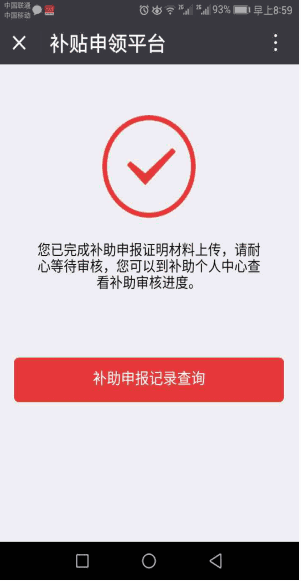 第五步:完成補(bǔ)助預(yù)登記后,點(diǎn)擊【補(bǔ)助申報(bào)記錄查詢】即可查詢個(gè)人補(bǔ)助申請進(jìn)度了。
