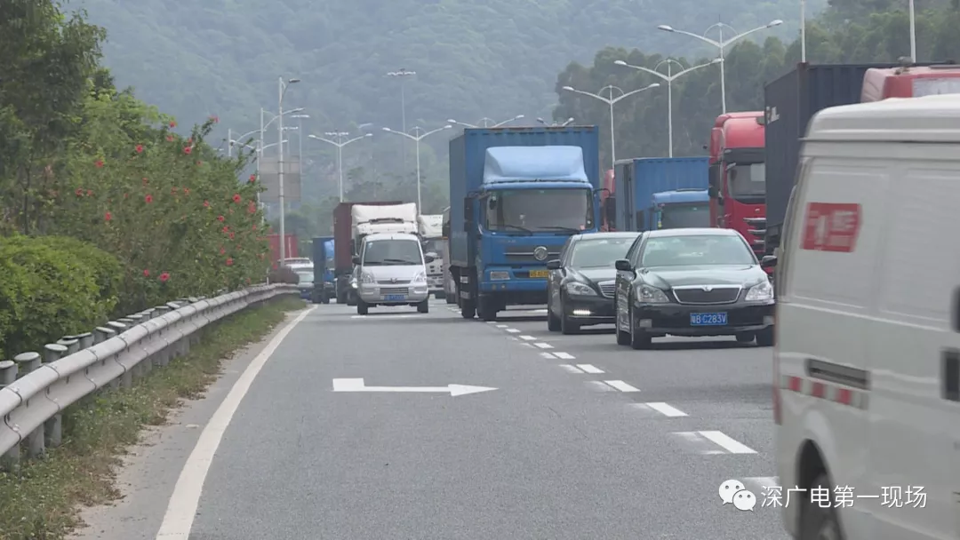 從梅觀路進梅林關(guān)往西方向,轉(zhuǎn)南坪快速路的輔道,是一條對貨車開放的路段。本來出口有兩條車道,而最近這兩車道變成了單車道,導(dǎo)致路況十分擁堵。