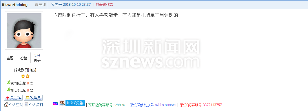 深圳新聞網(wǎng)10月12日訊(記者施冰冰)國慶假期剛過,就有網(wǎng)友在深圳論壇上反映“號稱深圳最美的騎行路段歸深圳灣公園管,實行周末不準(zhǔn)入原則,‘一刀切’管理影響了市民周末鍛煉及親子活動的體驗”。該網(wǎng)友質(zhì)問“深圳灣公園到底為誰建?”(查看帖文)