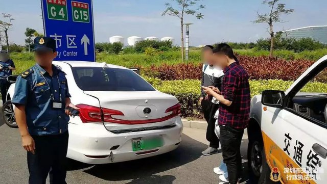 行動過程中,執(zhí)法人員在空港六道發(fā)現(xiàn)一輛車牌號為粵 BF*****的白色小轎車形跡可疑,于是上前準(zhǔn)備示意該車司機停車接受檢查,不料該車司機突然停車并迅速向后倒車試圖逃跑。