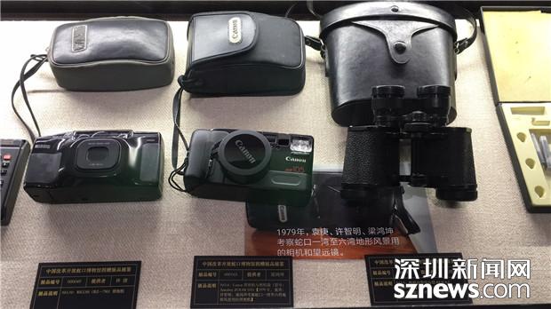 1979年,考察蛇口所用相機和望遠鏡。