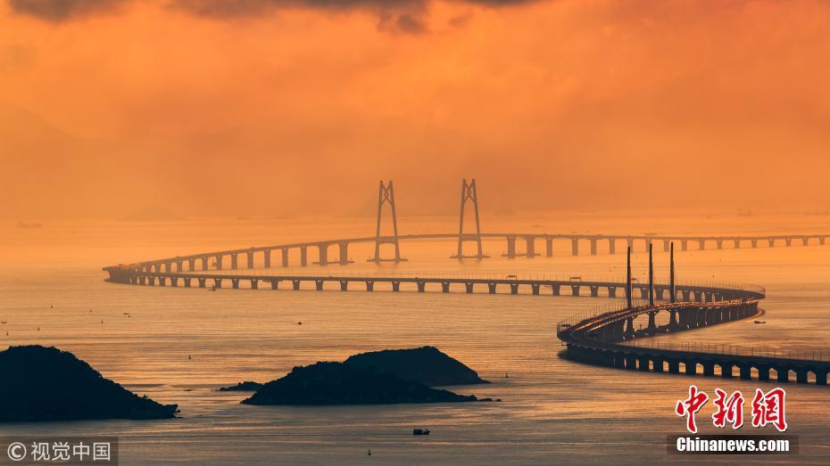 港珠澳大橋全長55公里,是中國第一例集橋、雙人工島、隧道為一體的跨海通道。
