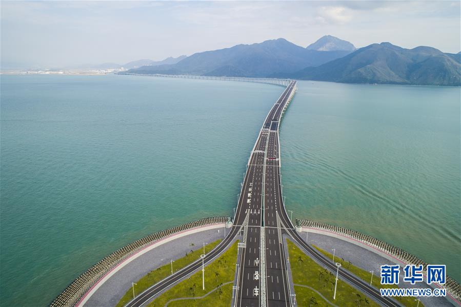 港珠澳大橋香港段(10月13日無人機拍攝)。即將于10月24日通車的港珠澳大橋跨越伶仃洋,在香港、珠海和澳門三地之間架起一條直接陸路的通道。港珠澳大橋香港段由東端的香港口岸人工島和向西連接大橋主體的12公里香港接線組成,是這一超級跨海通道的重要組成部分。新華社記者呂小煒攝