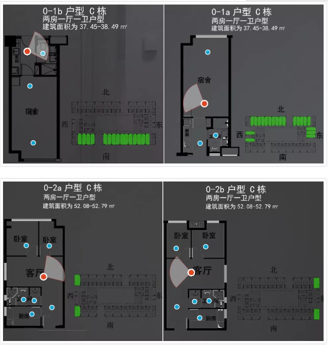 建筑面積約為52.08平方米的二房一廳58套,分別位于7棟C座的5-19層;