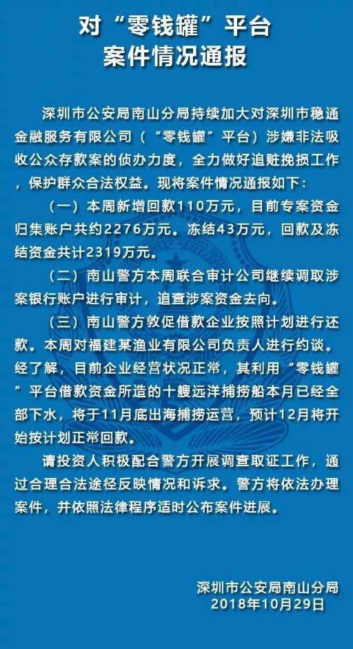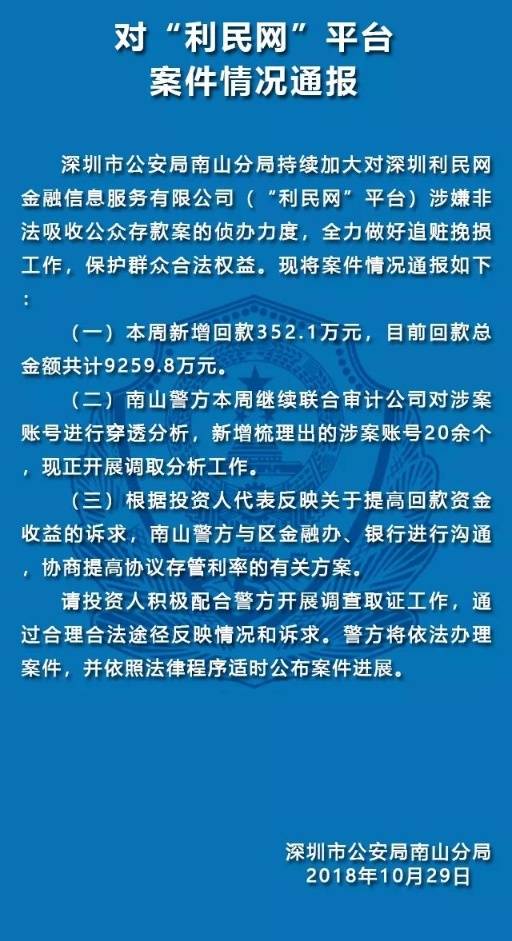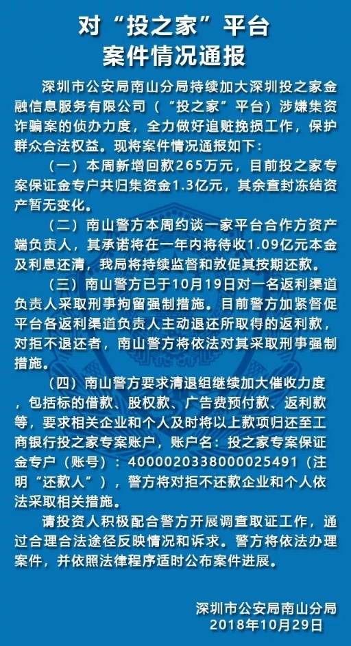 10月29日,深圳南山公安通報(bào)五家涉嫌非法集資犯罪的P2P平臺案件情況。五家平臺分別是“中融投”“投之家”“零錢罐”“利民網(wǎng)”“金融圈”平臺。