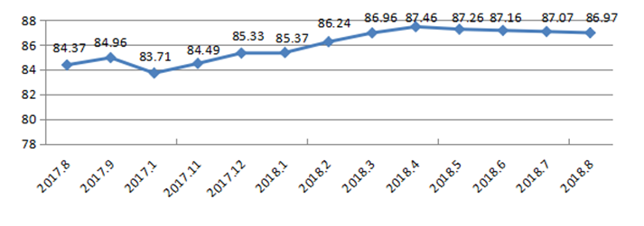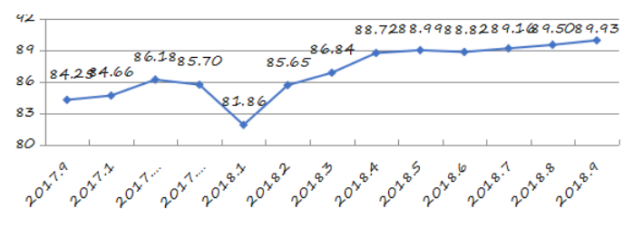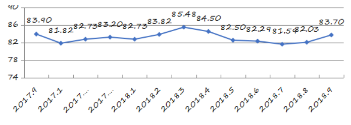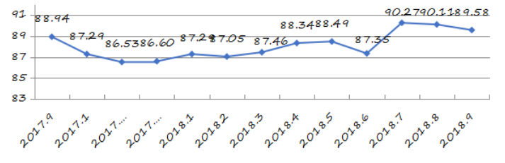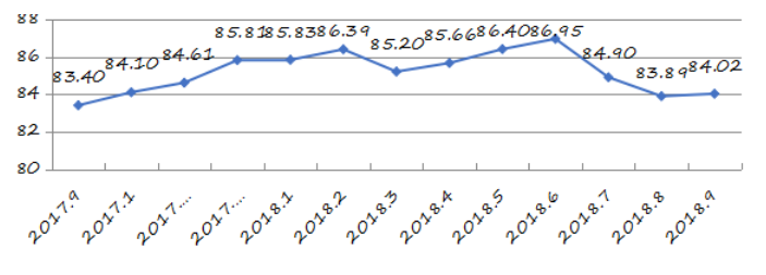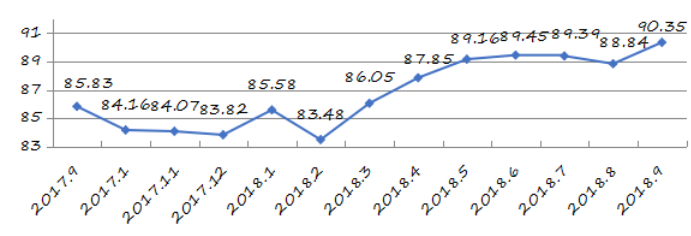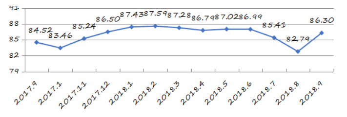 國家統(tǒng)計(jì)局深圳調(diào)查隊(duì)編制9月份深圳市城市交通文明指數(shù)為87.02分,比上月增加0.05分,比上年同期增加2.06分;深圳市城市交通文明進(jìn)步指數(shù)為-0.05 % (見圖1)。