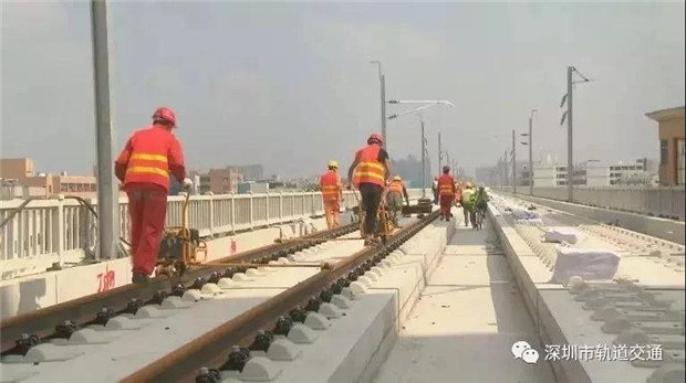 從施工現場可以看到,鋪軌機把長軌放入無碴道床就位,當鋼軌最后精準就位后,要求正負誤差不超過1毫米。目前鋪軌進度至少每天7公里,11日上午從金沙站開始不停歇作業(yè),到下午兩點鋪軌作業(yè)已臨近深圳。項目建設者表示,大約本月20號鋪設到深圳機場北站。