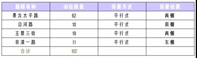 其中,桂月路擬設(shè)置泊位60個,樟閣路設(shè)置39個,榮福路設(shè)置112個,溢佳路設(shè)置59個,新丹路設(shè)置100個,福慶路設(shè)置27個,翠幽路設(shè)置79個,景龍?zhí)铰吩O(shè)置62個,沿河路設(shè)置10個,玉翠三街設(shè)置19個,民清一路設(shè)置11個,華天路設(shè)置47個,永樂路設(shè)置21個,簡上路設(shè)置63個,上芬小學(xué)路設(shè)置18個,新牛路設(shè)置21個,油聯(lián)路設(shè)置18個,黎光工業(yè)路設(shè)置22個??偣?88個“宜停車”泊位。
