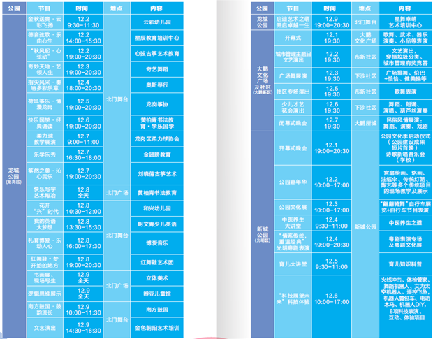 本次公園文化季由往年的公園文化節(jié)演變而來,時間由原先的一周延長為一個月。11月16日至12月16日,市、區(qū)各公園共設22個會場,組織180多項文藝節(jié)目在公園展演,免費讓廣大市民欣賞。