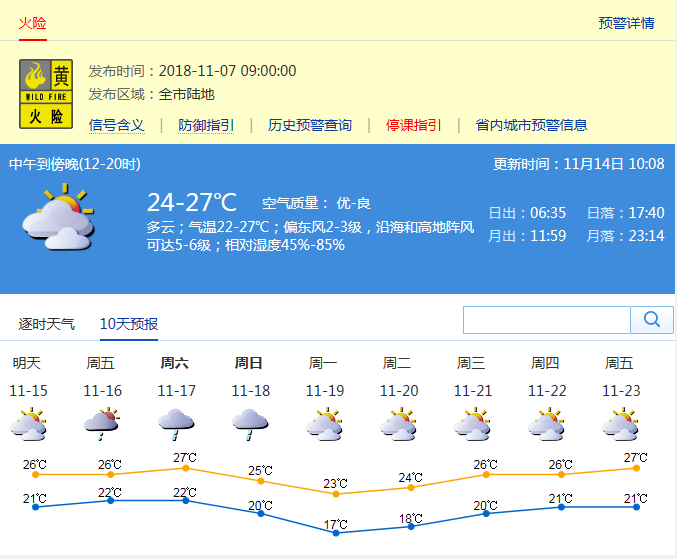 市氣象局發(fā)布未來十天天氣預(yù)報(數(shù)據(jù)更新于11月14日10時08分)