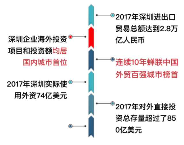2016年起深圳上升為國際性綜合交通樞紐,深圳機場近3年新增了35個國際客運通航城市,由2015年底的11個增至目前的46個。這代表著深圳從以港口為代表的出口聯(lián)通全球,到以航空為代表的資源、服務(wù)、人才聯(lián)通全球,情況發(fā)生著改變。