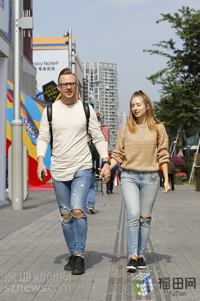 身穿破洞牛仔褲的時(shí)尚外國情侶。