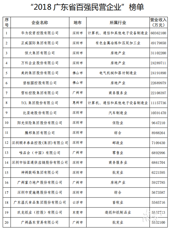 近日,廣東民企百?gòu)?qiáng)榜出爐!