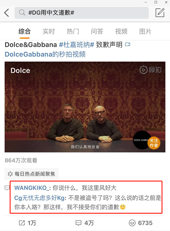 然后,D&G官方迅速出來回應(yīng)說:賬號(hào)被盜