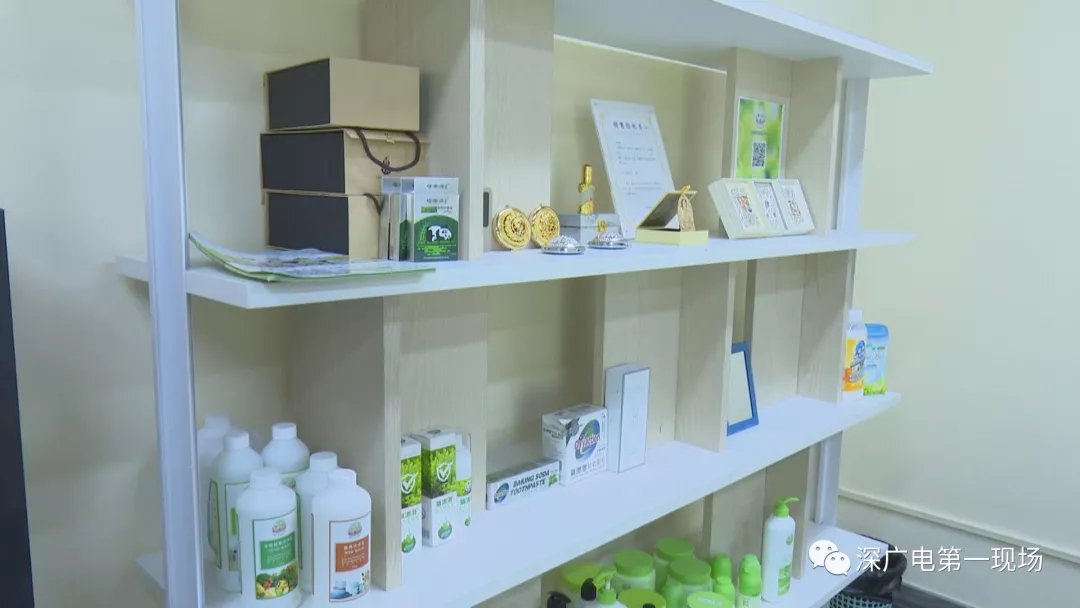 隨后執(zhí)法人員兵分多路,對(duì)這家福代代公司進(jìn)行檢查,其中一路執(zhí)法人員來(lái)到會(huì)議室,發(fā)現(xiàn)有不少的產(chǎn)品擺放在展示架上,其中有記者暗訪時(shí)看到的各種所謂的“能量”產(chǎn)品,還有一部分產(chǎn)品全部是一些洗滌用品,各式各樣,五花八門。執(zhí)法人員在檢查中發(fā)現(xiàn)展示架上的一些傳單,存在問(wèn)題。