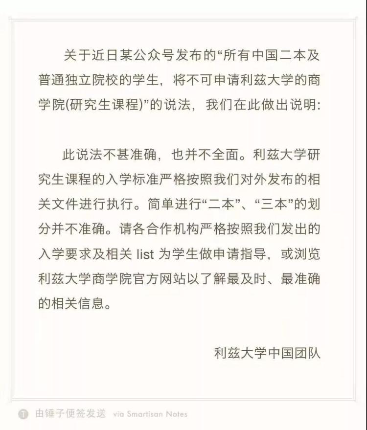 網(wǎng)文中說(shuō),布里斯托大學(xué)、杜倫大學(xué)、利茲大學(xué)、曼徹斯特大學(xué)、倫敦瑪麗女王大學(xué)、謝菲爾德大學(xué)、格拉斯哥大學(xué)、諾丁漢大學(xué)8所英國(guó)大學(xué)聯(lián)合發(fā)布信息,表示明年開(kāi)始不再接受部分中國(guó)學(xué)生的申請(qǐng)。文中還一一列舉了8所高校的申請(qǐng)門(mén)檻:布里斯托大學(xué),學(xué)校的經(jīng)濟(jì)金融管理學(xué)院申請(qǐng)不接受來(lái)自安徽大學(xué)、大連海事大學(xué)、福州大學(xué)等24所中國(guó)大學(xué)學(xué)生;諾丁漢大學(xué),全面上調(diào)來(lái)自中國(guó)211/985大學(xué)的學(xué)生,進(jìn)入該校商學(xué)院的分?jǐn)?shù),均分要求80%以上;倫敦瑪麗女王大學(xué)不接受所有非中國(guó)985/211的學(xué)生……