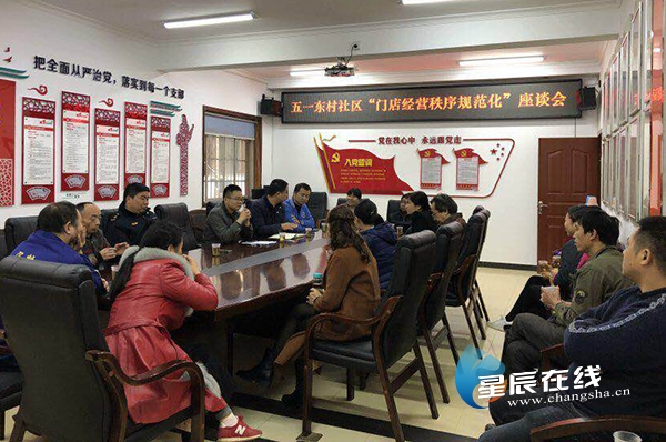 (商戶們共聚一堂,討論如何規(guī)范化門店經(jīng)營(yíng)秩序。)