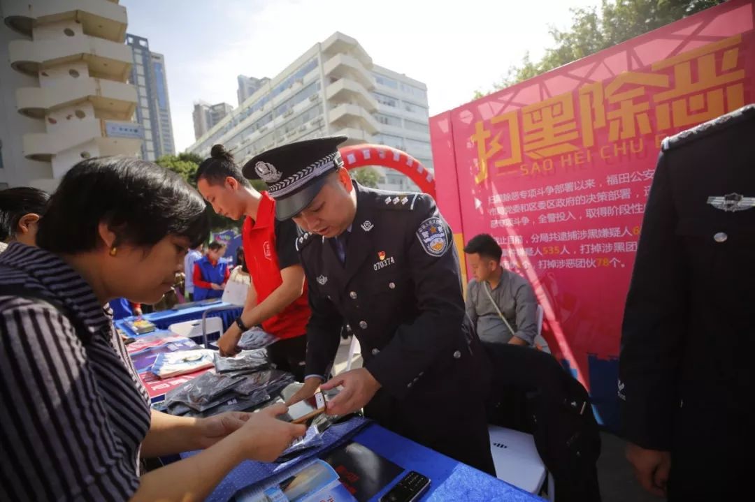 深圳市公安局指揮部有獎舉報中心聯(lián)合福田公安分局開展“有獎舉報”宣傳活動,民警現(xiàn)場發(fā)放宣傳資料,積極發(fā)動群眾踴躍舉報,不斷提高群眾對掃黑除惡專項斗爭的知曉度,市民咨詢不斷,形成了對黑惡勢力“零容忍”和人人喊打的良好氛圍。