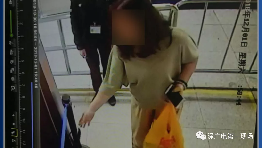 監(jiān)控顯示,肖女士身后有一名身穿駝色上衣的女子,在通過安檢之后,把自己的黑色背包拿走之后,并沒有立刻離開,而是站在肖女士藍(lán)色挎包旁,等待了10秒左右的時間,隨后就拿走了藍(lán)色挎包。