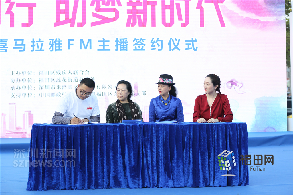 喜馬拉雅FM相關(guān)負(fù)責(zé)人現(xiàn)場(chǎng)與福田殘疾人網(wǎng)絡(luò)主播進(jìn)行簽約。