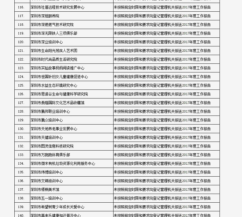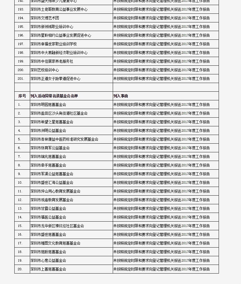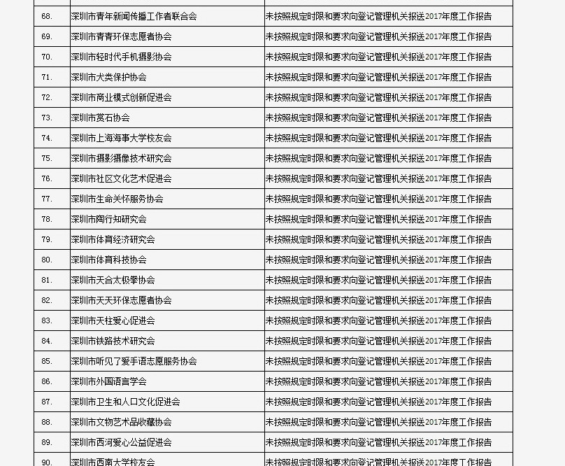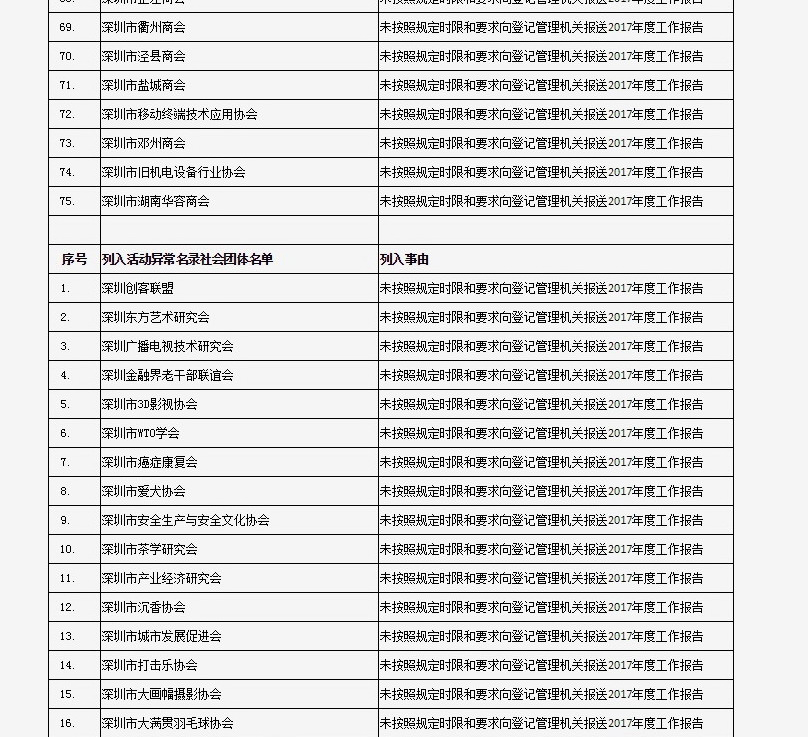 列入社會(huì)組織活動(dòng)異常名錄 來(lái)源:深圳市民政局