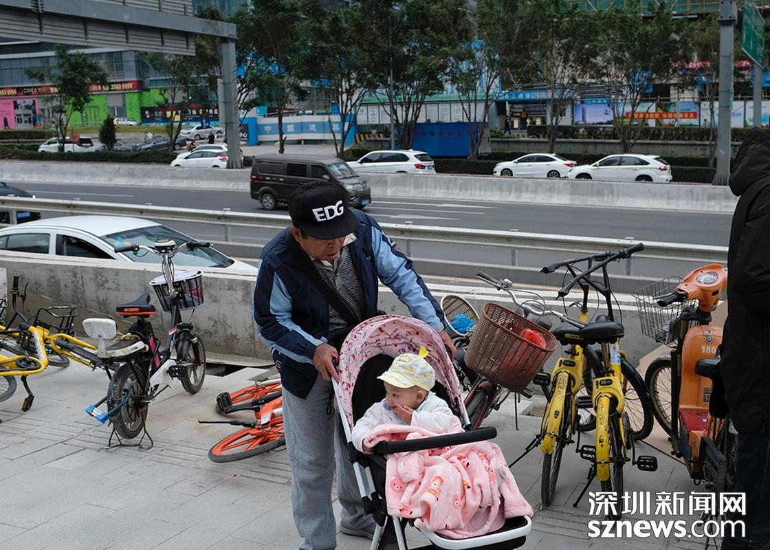 2018年12月12日,羅湖田貝地鐵站附近,一位和家長(zhǎng)出行的小朋友蓋上了小被子御寒。