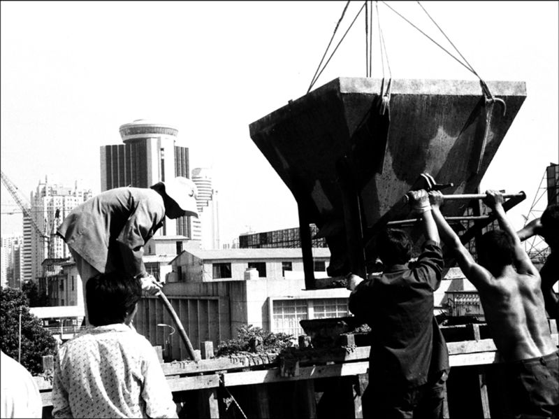 1985年,建設(shè)者們在深圳火車站人行天橋施工。呂翔攝