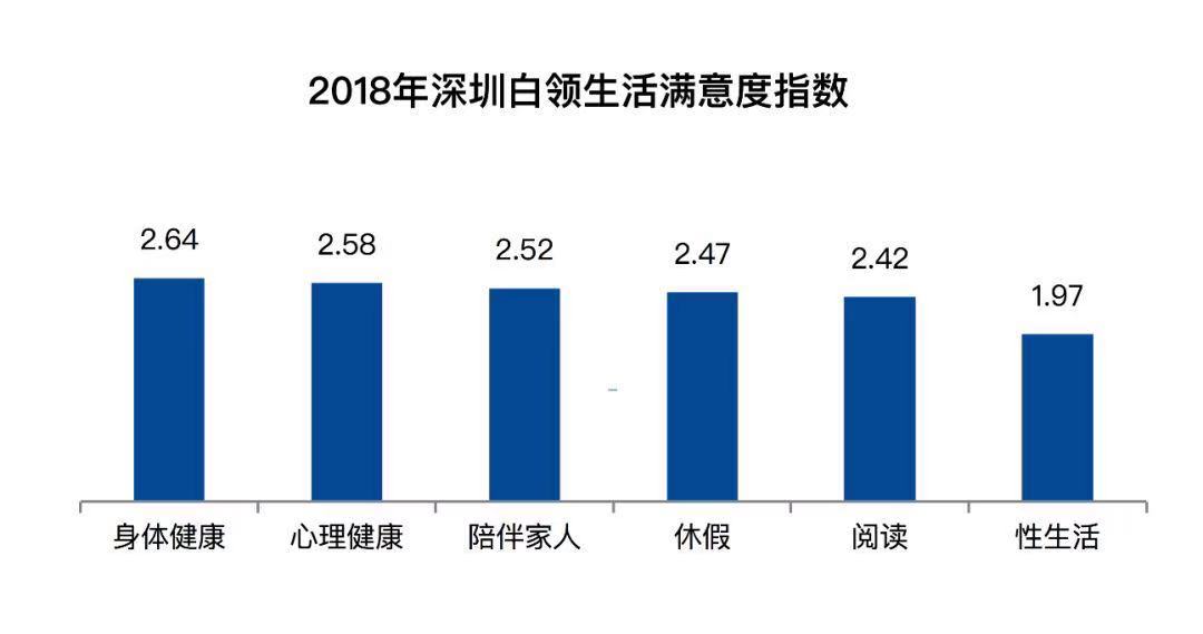 另外,根據(jù)調查,深圳白領對自己身體健康狀況的滿意度最高,對自己的性生活最不滿意。性生活雖然是一個隱秘的話題,但是卻又是決定白領生活質量很重要的一環(huán),工作壓力大、經(jīng)濟壓力大也是深圳白領無暇戀愛,不能有太多精力經(jīng)營兩性關系的重要原因,如何在中間找到平衡點,需要企業(yè)和雇員一起思考。
